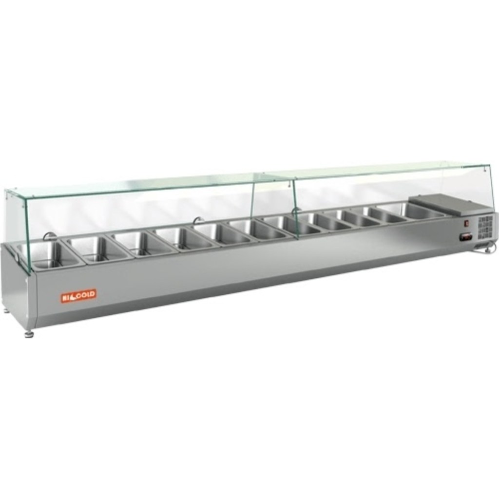Каталог оборудования Холодильное оборудованиеВитрины для ингредиентовВитрина холодильная для ингредиентов HICOLD VRTG 2360 1/3 Витрина холодильная для ингредиентов HICOLD VRTG 2360 1/3 Код товара: 064-449 Поделиться: WhatsAppTelegram СравнитьДобавить в КПВ избранное 0 89 847 ₽ В корзину 0 шт Под заказСамовывоз сегодня бесплатно Взять в кредит Купить в лизинг Получить консультацию в WhatsApp Описание Характеристики Отзывы 0 Инструкции 2 Витрина холодильная для ингредиентов HICOLD VRTG 2360 1/3 предназначена для охлаждения, кратковременного хранения и наглядной демонстрации ингредиентов, салатов и готовых блюд на предприятиях общественного питания и в торговых точках. Гастроёмкости в комплект не входят, приобретаются отдельно. Основные особенности: Корпус выполнен из нержавеющей стали, обеспечивая долговечность и легкость в уходе; Электронная панель управления для точной настройки температуры; Модель с надстройкой из стекла (исполнение G) для удобной демонстрации продуктов; Высота витрины — 225 мм, высота стеклянной надстройки — 205 мм; Вместимость: 10 гастроёмкостей GN1/3 + 1 гастроёмкость GN1/2; Опорные ножки для устойчивой установки на столешнице. HICOLD VRTG 2360 1/3 — компактная и функциональная настольная витрина, идеально подходящая для демонстрации и кратковременного хранения продуктов на профессиональной кухне или в торговой зоне.Изображение товара, представленного на фото, может отличаться от его фактического вида. Показать все Габаритные размеры2360×385×459 ммДиапазон рабочей температурыот +2 до +7 °CДлина2360 ммГлубина385 ммВысота459 ммТип крышкиСтеклянная Гастроемкостей11 штТип гастроемкостейGN1/3, GN1/2 Мощность0,15 ВтНапряжение220 ВТип охлажденияСтатическое Материал изготовленияНержавеющая сталь ХладагентR134 Вес нетто67 кгВес брутто107 кгТип оттайкиРучная Габариты в упаковке2460×485×559 ммБрендHicold Оставить отзыв Еще никто не оставил отзыв на этот товар Инструкция на HICOLD VRTG 2360.pdfДекларация о соответствии.pdf Похожие товары Перейти в каталог В наличии 46 639 ₽ Витрина холодильная для ингредиентов TEFCOLD VK33-120 В наличии 52 263 ₽ Витрина холодильная для ингредиентов HICOLD VRTU 1485 1/4 Под заказ 59 662 ₽ Витрина холодильная для ингредиентов HICOLD VRTU 1915 к PZ4 (1/3) Под заказ 72 082 ₽ Витрина холодильная для ингредиентов HICOLD VRTG 1915 к PZ4 (1/3) В наличии 53 290 ₽ Витрина холодильная для ингредиентов HICOLD VRTU 1390 к PZ3 (1/3) В наличии 36 211 ₽ Витрина холодильная для ингредиентов HURAKAN HKN-VRX1200/330 Под заказ 61 335 ₽ Витрина холодильная для ингредиентов HICOLD VRTG 1390 1/4 В наличии 53 345 ₽ Витрина холодильная для ингредиентов Tatra TVR1800-8GN1/4 С этим товаром покупают Под заказ 135 630 ₽ Шкаф холодильный универсальный Carboma V560 INOX В наличии 51 492 ₽ Шкаф морозильный HURAKAN HKN-UF100G Под заказ 95 458 ₽ Шкаф холодильный универсальный МХМ Капри ШХ 0,7 УМВ В наличии 203 065 ₽ Шкаф морозильны Polair CB-114G Под заказ 167 209 ₽ Шкаф холодильный универсальный Arkto V1.0-G Под заказ 103 790 ₽ Шкаф морозильный Рапсодия R 700 LS В наличии 114 179 ₽ Шкаф холодильный TEFCOLD UR400S нержавеющий В наличии 134 127 ₽ Шкаф холодильный универсальный Ариада Рапсодия R 1400 V