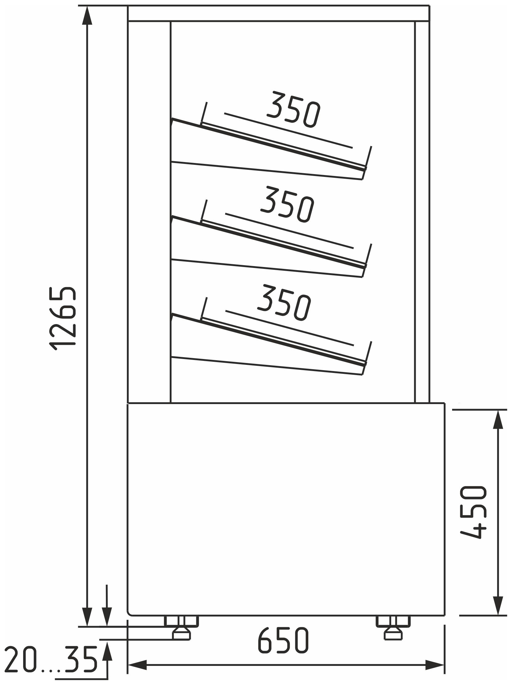 Витрина кондитерская Carboma KC70 N 0,6-2 Light Паттерн (0105 Венге) хлебная, без стекла