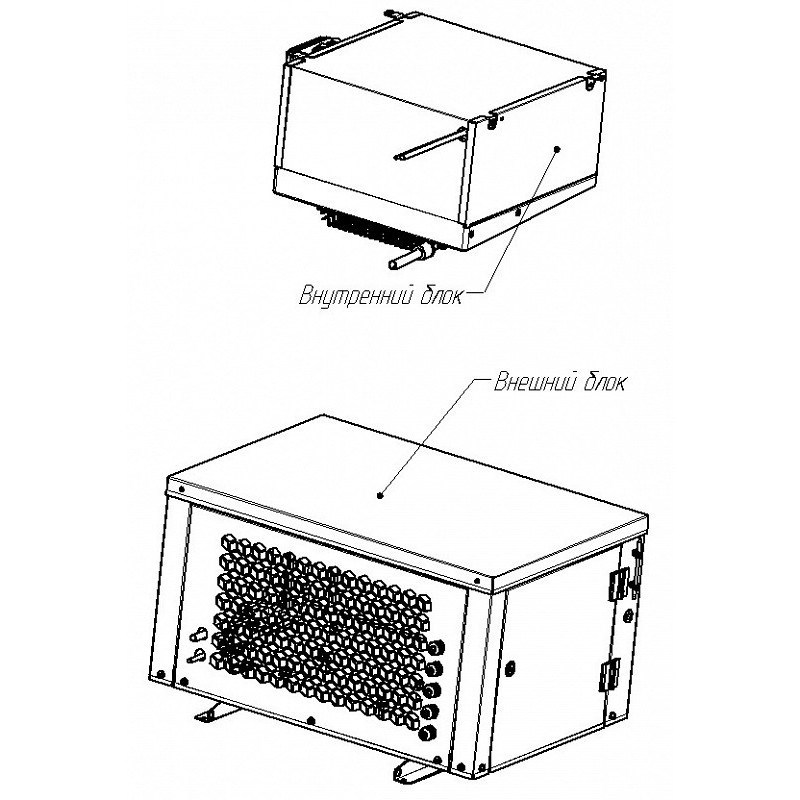 • Конденсаторный блок и воздухоохладитель заправлены сухим азотом — дополнительная защита при транспортировке и монтаже.