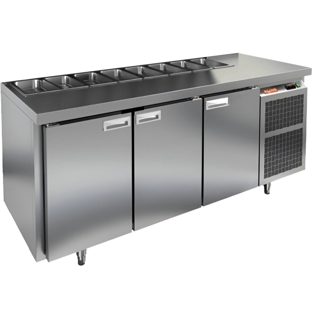 Каталог оборудования Холодильное оборудованиеСтолы охлаждаемыеСтолы холодильные для салатовСтол холодильный для салатов HiCold SL1-111SN (1/3) О без крышки Стол холодильный для салатов HiCold SL1-111SN (1/3) О без крышки Код товара: 064-522 Поделиться: WhatsAppTelegram СравнитьДобавить в КПВ избранное 0 163 162 ₽ В корзину 0 шт Под заказСамовывоз сегодня бесплатно Взять в кредит Купить в лизинг Получить консультацию в WhatsApp Описание Характеристики Отзывы 0 Инструкции 2 Стол холодильный для салатов HiCold SL1-111SN (1/3) О без крышки предназначен для предприятий общественного питания и торговли. Он обеспечивает хранение и подготовку ингредиентов для пиццы, салатов и других блюд, а также охлаждение и кратковременное хранение скоропортящихся продуктов. Модель сочетает рабочую поверхность и холодильный объем, позволяя повару иметь все необходимые компоненты под рукой. Корпус и столешница выполнены из нержавеющей стали, обеспечивая надежность и долговечность. Особенности: Динамическая система охлаждения — равномерное распределение температуры внутри холодильного объема. Автоматическая оттайка — упрощает уход за оборудованием. Электронная панель управления — точная настройка температуры и режимов работы. 3 вместительные внутренние полки формата GN 1/1 — удобное хранение ингредиентов. Автоматические доводчики дверей с фиксатором открытого положения — комфорт и безопасность работы. Легкозаменяемые магнитные уплотнители — простота обслуживания. Открытая агрегатная часть — облегчает доступ для обслуживания. Регулируемые по высоте ножки — адаптация к рабочей поверхности. Столешница без борта и без крышки, толщина столешницы и теплоизоляции 50 мм — надежная защита и удобство работы. Размер полки: 430×320мм (GN 1/1) Максимальная глубина гастроемкостей: 100 мм HiCold SL1-111SN (1/3) О без крышки — многофункциональный и надежный стол для профессиональной кухни. Обеспечивает удобство работы, эффективное охлаждение и безопасное хранение продуктов. Мобильная модификация с колёсами позволяет легко перемещать стол, что делает его идеальным для ресторанов, кафе и пиццерий.Изображение товара, представленного на фото, может отличаться от его фактического вида. Показать все Габаритные размеры1835×600×850 ммДиапазон рабочей температурыот +2 до +10 °CРасположение агрегатаБоковое Материал столешницыНержавеющая Тип столаС дверьми Тип двериГлухая Объём435 лКоличество дверей3 штТип гастроемкостейGN 1/3 Размер полки430×320 ммНапряжение220 ВМощность0,46 кВтТип охлажденияДинамический Тип оттайкиАвтоматическая СтолешницаБез борта Вес нетто120 кгВес брутто183 кгБрендHicold Оставить отзыв Еще никто не оставил отзыв на этот товар Паспорт на HICOLD SL1-111SN О.pdfДекларация о соответствии.pdf Ранее просмотрено Под заказ 305 992 ₽ Стол холодильный для салатов HiCold SL1-333GN (1/3) с крышкой