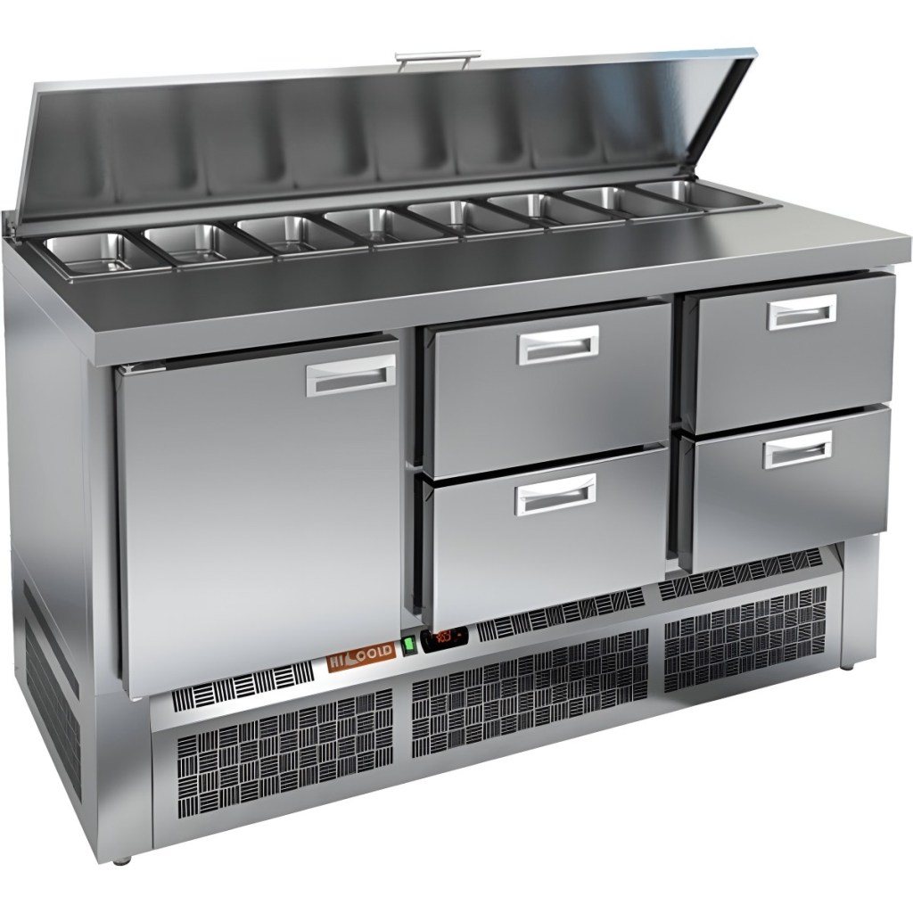 Каталог оборудования Холодильное оборудованиеСтолы охлаждаемыеСтолы холодильные для салатовСтол холодильный для салатов HiCold SLE1-122GN (1/3) с крышкой Стол холодильный для салатов HiCold SLE1-122GN (1/3) с крышкой Код товара: 064-914 Поделиться: WhatsAppTelegram СравнитьДобавить в КПВ избранное 0 208 792 ₽ В корзину 0 шт Под заказСамовывоз сегодня бесплатно Взять в кредит Купить в лизинг Получить консультацию в WhatsApp Описание Характеристики Отзывы 0 Инструкции 2 Стол холодильный для салатов HiCold SLE1-122GN (1/3) с крышкой предназначен для использования на предприятиях общественного питания и торговли. Он служит для хранения и обработки ингредиентов, используемых при приготовлении салатов, пиццы, закусок и других блюд. Также стол подходит для охлаждения и кратковременного хранения скоропортящихся продуктов и напитков. Модель сочетает в себе прочную рабочую поверхность и охлаждаемый внутренний объем, что упрощает процесс приготовления: все необходимые ингредиенты всегда под рукой. Корпус и столешница изготовлены из нержавеющей стали, устойчивой к воздействию влаги, механическим повреждениям и легко поддающейся очистке. Металлическая крышка защищает продукты от загрязнений и сохраняет их свежесть. Особенности: Электронная панель управления — обеспечивает точное и удобное регулирование температуры внутри камеры. 1 глухая дверь с автоматическими доводчиками и фиксацией — повышает удобство использования, особенно при загрузке и выгрузке продуктов. 4 выдвижных ящиков — позволяют удобно распределить ингредиенты и оптимально организовать пространство для хранения продуктов. Салат-бар вмещает 8 гастроемкостей — обеспечивает быстрый доступ к разнообразным ингредиентам. Автоматические доводчики дверей с фиксатором — улучшают эргономику и предотвращают случайное захлопывание. Магнитные уплотнители — легко заменяются и обеспечивают хорошую теплоизоляцию. Открытая агрегатная часть — облегчает доступ к элементам системы охлаждения для технического обслуживания. Регулируемые ножки — позволяют установить стол на неровной поверхности. Максимальная глубина гастроемкостей — 100 мм — подходит для хранения различных типов продуктов. Толщина столешницы — 50 мм — обеспечивает надежность и устойчивость при работе. Высота борта — 50 мм — защищает от проливания и загрязнений. Теплоизоляция толщиной 50 мм — способствует поддержанию стабильной температуры и экономии энергии. HiCold SLE1-122GN (1/3) с крышкой — это практичное и многофункциональное решение для профессиональной кухни. Благодаря вместительности, продуманной конструкции и надежной термоизоляции, стол позволяет организовать эффективное рабочее пространство и обеспечивает сохранность свежести продуктов в течение всего рабочего дня. Изображение товара, представленного на фото, может отличаться от его фактического вида. Показать все Габаритные размеры1485×700×850 ммДиапазон рабочей температурыот +2 до +10 °CРасположение агрегатаНижнее Материал столешницыНержавеющая Тип столаС дверьми и ящиками Тип двериГлухая Объём375 лКоличество дверей1 штТип гастроемкостейGN 1/3 Количество ящиков4 штНапряжение220 ВМощность0,2 кВтТип охлажденияДинамическое Тип оттайкиАвтоматическая СтолешницаС бортом Габариты в упаковке1700×850×1080 ммВес нетто115 кгВес брутто160 кгБрендHicold Оставить отзыв Еще никто не оставил отзыв на этот то