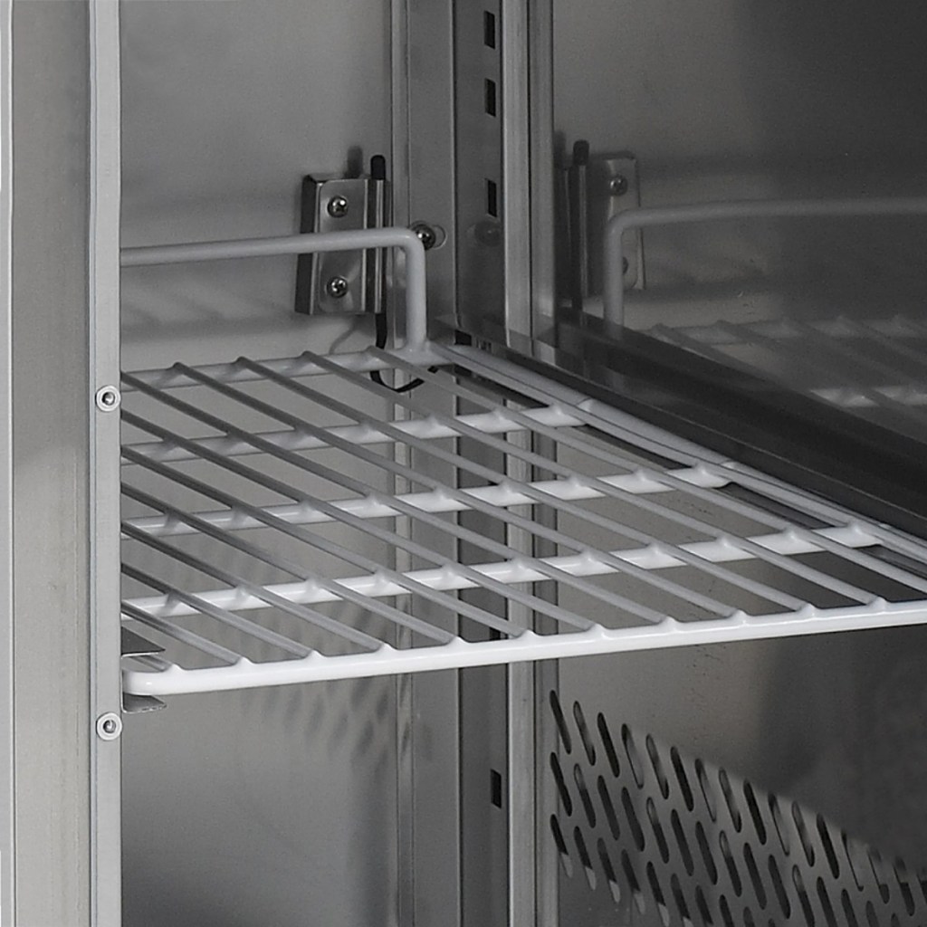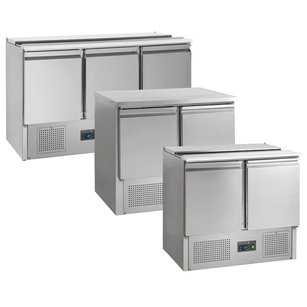 Каталог оборудования Холодильное оборудованиеСтолы охлаждаемыеСтолы холодильные для салатовСтол холодильный для салатов TEFCOLD SA920 Стол холодильный для салатов TEFCOLD SA920 Код товара: 010-377 Поделиться: WhatsAppTelegram СравнитьДобавить в КПВ избранное 0 92 803 ₽ В корзину 0 шт В наличииСамовывоз сегодня бесплатно Взять в кредит Купить в лизинг Получить консультацию в WhatsApp Описание Характеристики Отзывы 0 Стол холодильный для салатов TEFCOLD SA920 — профессиональное оборудование для обработки ингредиентов, приготовления салатов, охлаждения и кратковременного хранения продуктов на предприятиях общественного питания и торговли. Корпус и внутренняя отделка выполнены из нержавеющей стали AISI 304, что обеспечивает долговечность, гигиеничность и лёгкость ухода. Особенности модели: Статическое охлаждение с вентилятором — равномерное распределение температуры Автоматическое размораживание — поддержка стабильного режима без наледи Электронный термостат и градусник — точный контроль температуры Хладагент R134a, подзарядка — 0,165 кг Рабочая поверхность для нарезки и открытый верх под гастроёмкости 2 полки для удобной организации внутреннего пространства Регулируемые по высоте ножки — устойчивость на неровной поверхности Климатический класс 4 — работа при температуре до +30 °C Полезный объём: 230 л Размеры полки: 530×325 мм Внутренние размеры камеры: 830×515×500 мм Энергопотребление: 2,1 кВт/сутки Уровень шума: 42 дБ TEFCOLD SA920 — надёжный и компактный холодильный стол для профессиональных кухонь и предприятий общественного питания. Он сочетает рабочую поверхность для нарезки, эффективное охлаждаемое пространство и удобное управление температурой, обеспечивая сохранность продуктов и комфорт в работе.Изображение товара, представленного на фото, может отличаться от его фактического вида. Показать все Габаритные размеры900×700×877 ммДиапазон рабочей температурыот +2 до +10 °CРасположение агрегатаНижнее Материал столешницыНержавеющая Тип столаС дверьми Тип двериГлухая Общий объем260 лПолезный объем230 лКоличество дверей2 штРазмер полкиGN1/1 ммНапряжение230 ВРасход электроэнергии в сутки2,1 кВт/сутТип охлажденияДинамический Тип оттайкиАвтоматическая ХладагентR600a Габариты в упаковке980×770×1040 ммВес нетто70 кгВес брутто81 кгБрендTefcold Оставить отзыв Еще никто не оставил отзыв на этот товар Похожие товары Перейти в каталог В наличии 101 112 ₽ Стол холодильный среднетемпературный Polair ТМ2-G Под заказ 64 485 ₽ Стол холодильный среднетемпературный Cooleq S901 Под заказ 85 405 ₽ Стол холодильный среднетемпературный Cooleq SNACK2100TN/600 В наличии 65 229 ₽ Стол холодильный среднетемпературный HURAKAN HKN-GNL2TN Ранее просмотрено Под заказ 107 617 ₽ Дверь холодильная распашная двустворчатая НТ-РДД-2200*2000/80