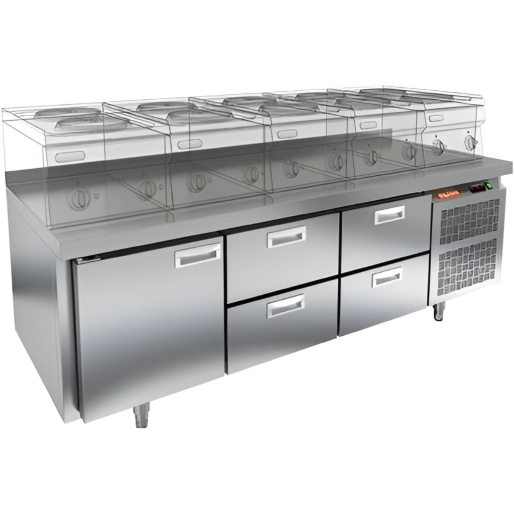Каталог оборудования Холодильное оборудованиеСтолы охлаждаемыеСтолы холодильные под тепловое оборудованиеСтол охлаждаемый HiCold SN 122/TN LT под тепловое оборудование Стол охлаждаемый HiCold SN 122/TN LT под тепловое оборудование Код товара: 065-547 Поделиться: WhatsAppTelegram СравнитьДобавить в КПВ избранное 0 193 042 ₽ В корзину 0 шт Под заказСамовывоз сегодня бесплатно Взять в кредит Купить в лизинг Получить консультацию в WhatsApp Описание Характеристики Отзывы 0 Инструкции 2 Стол охлаждаемый HiCold SN 122/TN LT SH под тепловое оборудование предназначен для обработки ингредиентов и временного хранения скоропортящихся продуктов и напитков на предприятиях общественного питания и торговли. Устройство совмещает функции рабочей поверхности и холодильной камеры. Столешница рассчитана на установку теплового оборудования: под рабочей поверхностью встроен ДСП-лист, который укрепляет конструкцию и препятствует проникновению тепла внутрь. Такое решение обеспечивает дополнительную жесткость, позволяет рационально использовать рабочее пространство и повышает эффективность работы на кухне. Особенности: 1 распашная дверь — обеспечивает удобный доступ к внутреннему пространству. 4 выдвижных ящика — обеспечивают удобный доступ к продуктам и инвентарю Автоматические доводчики дверей с фиксатором открытого положения повышают эргономику и способствуют сохранению холода. Легкозаменяемые магнитные уплотнители обеспечивают плотное прилегание дверей и лёгкость в обслуживании. Открытая агрегатная часть упрощает доступ к компрессору при техническом обслуживании. Регулируемые по высоте низкие ножки — удобная установка и устойчивость стола даже на неровной поверхности. Толщина столешницы — 50 мм обеспечивает прочность рабочей поверхности. Высота борта — 50 мм предотвращает падение продуктов и инвентаря. Толщина теплоизоляции — 50 мм способствует энергоэффективности и стабильному температурному режиму. HiCold SN 122/TN LT SH — это надёжное и удобное оборудование, сочетающее охлаждение и рабочее пространство. Благодаря продуманной конструкции и совместимости с гастроемкостями GN 1/1, стол станет практичным решением для кухни любого профессионального уровня.Изображение товара, представленного на фото, может отличаться от его фактического вида. Показать все Габаритные размеры1835×600×675 ммДиапазон рабочей температурыот -2 до +10 °CМатериал столешницыНержавеющая Расположение агрегатаБоковое Объём320 лТип столаС дверьми и ящиками Тип двериГлухая Количество дверей1 штКоличество ящиков4 штРазмер полки430×325 ммНапряжение220 ВМощность0,46 кВтТип охлажденияДинамический Тип оттайкиАвтоматическая СтолешницаС бортом Габариты в упаковке1935×740×970 ммВес нетто162 кгВес брутто182 кгБрендHicold Оставить отзыв Еще никто не оставил отзыв на этот товар Паспорт на HICOLD SN 122TN LT SH.pdfДекларация о соответствии.pdf Похожие товары Перейти в каталог В наличии 128 777 ₽ Стол морозильный Cooleq GN3200BT с бортом Под заказ 166 404 ₽ Стол морозильный Abat СХН-70-02 без борта (дверь, дверь, дверь) С этим товаром покупают В наличии 140 675 ₽ Шкаф холодильный универсальный Polair CV 110-S Под заказ 76 010 ₽ Газовый лавовый гриль Abat ГЛК-40Н Ранее просмотрено Под заказ 187 822 ₽ Компрессорно-конденсаторный блок Intercold CCB225 M5,2