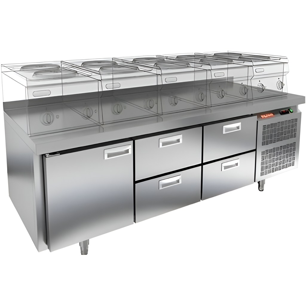Каталог оборудования Холодильное оборудованиеСтолы охлаждаемыеСтолы холодильные под тепловое оборудованиеСтол охлаждаемый HiCold SN 222/TN LT под тепловое оборудование Стол охлаждаемый HiCold SN 222/TN LT под тепловое оборудование Код товара: 065-548 Поделиться: WhatsAppTelegram СравнитьДобавить в КПВ избранное 0 223 642 ₽ В корзину 0 шт Под заказСамовывоз сегодня бесплатно Взять в кредит Купить в лизинг Получить консультацию в WhatsApp Описание Характеристики Отзывы 0 Инструкции 2 Стол охлаждаемый HiCold SN 222/TN LT SH под тепловое оборудование предназначен для обработки ингредиентов и временного хранения скоропортящихся продуктов и напитков на предприятиях общественного питания и торговли. Устройство совмещает функции рабочей поверхности и холодильной камеры. Столешница рассчитана на установку теплового оборудования: под рабочей поверхностью встроен ДСП-лист, который укрепляет конструкцию и препятствует проникновению тепла внутрь. Такое решение обеспечивает дополнительную жесткость, позволяет рационально использовать рабочее пространство и повышает эффективность работы на кухне. Особенности: 6 выдвижных ящика — обеспечивают удобный доступ к продуктам и инвентарю Автоматические доводчики дверей с фиксатором открытого положения повышают эргономику и способствуют сохранению холода. Легкозаменяемые магнитные уплотнители обеспечивают плотное прилегание дверей и лёгкость в обслуживании. Открытая агрегатная часть упрощает доступ к компрессору при техническом обслуживании. Регулируемые по высоте низкие ножки — удобная установка и устойчивость стола даже на неровной поверхности. Толщина столешницы — 50 мм обеспечивает прочность рабочей поверхности. Высота борта — 50 мм предотвращает падение продуктов и инвентаря. Толщина теплоизоляции — 50 мм способствует энергоэффективности и стабильному температурному режиму. HiCold SN 222/TN LT SH — это надёжное и удобное оборудование, сочетающее охлаждение и рабочее пространство. Благодаря продуманной конструкции и совместимости с гастроемкостями GN 1/1, стол станет практичным решением для кухни любого профессионального уровня.Изображение товара, представленного на фото, может отличаться от его фактического вида. Показать все Габаритные размеры1835×600×675 ммДиапазон рабочей температурыот -2 до +10 °CМатериал столешницыНержавеющая Расположение агрегатаБоковое Объём320 лТип столаС ящиками Тип двериГлухая Количество ящиков6 штРазмер полки430×325 ммНапряжение220 ВМощность0,5 кВтТип охлажденияДинамический Тип оттайкиАвтоматическая СтолешницаС бортом Габариты в упаковке2380×740×970 ммВес нетто115 кгВес брутто155 кгБрендHicold Оставить отзыв Еще никто не оставил отзыв на этот товар Паспорт на HICOLD SN 222/TN LT SH.pdfДекларация о соответствии.pdf Похожие товары Перейти в каталог В наличии 128 777 ₽ Стол морозильный Cooleq GN3200BT с бортом Под заказ 166 404 ₽ Стол морозильный Abat СХН-70-02 без борта (дверь, дверь, дверь) С этим товаром покупают В наличии 140 675 ₽ Шкаф холодильный универсальный Polair CV 110-S Под заказ 76 010 ₽ Газовый лавовый гриль Abat ГЛК-40Н Ранее просмотрено Под заказ 191 692 ₽ Стол охлаждаемый HiCold GN 122/TN LT SH под тепловое оборудование Под заказ 104 841 ₽ Стол морозильный HiCold GN 1/BT LT под тепловое оборудование Под заказ 159 202 ₽ Стол охлаждаемый HiCold GN 1111/TN LT SH под тепловое оборудование Под заказ 160 822 ₽ Стол морозильный HiCold SN 12/BT LT под тепловое оборудование Под зак