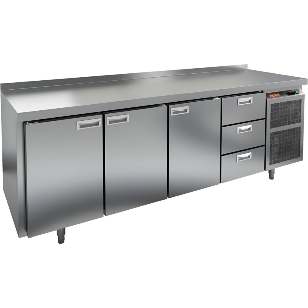 Каталог оборудования Холодильное оборудованиеСтолы охлаждаемыеСтолы холодильные среднетемпературныеСтол холодильный среднетемпературный HiCold SN 1113/TN Стол холодильный среднетемпературный HiCold SN 1113/TN Код товара: 001-329 Поделиться: WhatsAppTelegram СравнитьДобавить в КПВ избранное 0 212 841 ₽ В корзину 0 шт Под заказСамовывоз сегодня бесплатно Взять в кредит Купить в лизинг Получить консультацию в WhatsApp Описание Характеристики Отзывы 0 Инструкции 2 Стол холодильный среднетемпературный HiCold SN 1113/TN сочетает в себе рабочую поверхность для раскатывания теста и обработки ингредиентов, а также охлаждающую камеру для кратковременного хранения скоропортящихся продуктов и напитков. Оборудование предназначено для предприятий общественного питания и обеспечивает комфортную и эффективную работу на кухне. Особенности: Цельнозаливной корпус из нержавеющей стали с 50 мм теплоизоляцией, обеспечивающий высокую герметичность и жесткость конструкции. Надежный электронный блок управления с несколькими режимами оттаивания для удобства эксплуатации. Вентилятор повышенной мощности, обеспечивающий принудительную вентиляцию по всему объему стола и равномерное быстрое охлаждение. Интеллектуальное размораживание и термическое выпаривание конденсата для поддержания оптимальных условий внутри камеры. Новая экономичная модель компрессора, снижающая энергопотребление. Облегченный доступ к агрегату для удобства сервисного обслуживания. Двери с петлями-доводчиками, повышающими комфорт и безопасность при эксплуатации. Регулируемые по высоте ножки для адаптации к рабочей поверхности и неровностям пола. Максимальная нагрузка на полку — 50 кг. Высота борта — 50 мм для удобства и безопасности работы. Рабочая температура окружающего воздуха — от 12 до 37 °C. HiCold SN 1113/TN — это надежное, эргономичное и энергоэффективное решение для профессиональной кухни, сочетающее качественные материалы и современные технологии для оптимального хранения и подготовки продуктов.Изображение товара, представленного на фото, может отличаться от его фактического вида. Показать все Габаритные размеры2280×600×850 ммДиапазон рабочей температурыот -2 до +10 °CРасположение агрегатаБоковое Материал столешницыНержавеющая Тип столаС дверьми и ящиками Тип двериГлухая Объём570 лКоличество дверей3 штКоличество ящиков3 штНапряжение220 ВТип охлажденияДинамический Тип оттайкиАвтоматическая СтолешницаС бортом Вес нетто142 кгБрендHicoldВсе холодильные столы HicoldВсе оцинкованные холодильные столы Все холодильные столы с бортом Оставить отзыв Еще никто не оставил отзыв на этот товар Паспорт на HICOLD SN 1113/TN.pdfДекларация о соответствии.pdf Похожие товары Перейти в каталог Под заказ 197 541 ₽ Стол холодильный среднетемпературный HiCold SN 1112/TN Под заказ 258 741 ₽ Стол холодильный среднетемпературный HiCold SN 1133/TN В наличии 132 149 ₽ Стол холодильный среднетемпературный Cooleq GN4100TN С этим товаром покупают Под заказ 95 465 ₽ Жарочная поверхность Аbat АКО-80/1Н-С-02 Ранее просмотрено В наличии 344 570 ₽ Сплит-система холодильная низкотемпературная Intercold LCM 443 FT (опция -30° С)