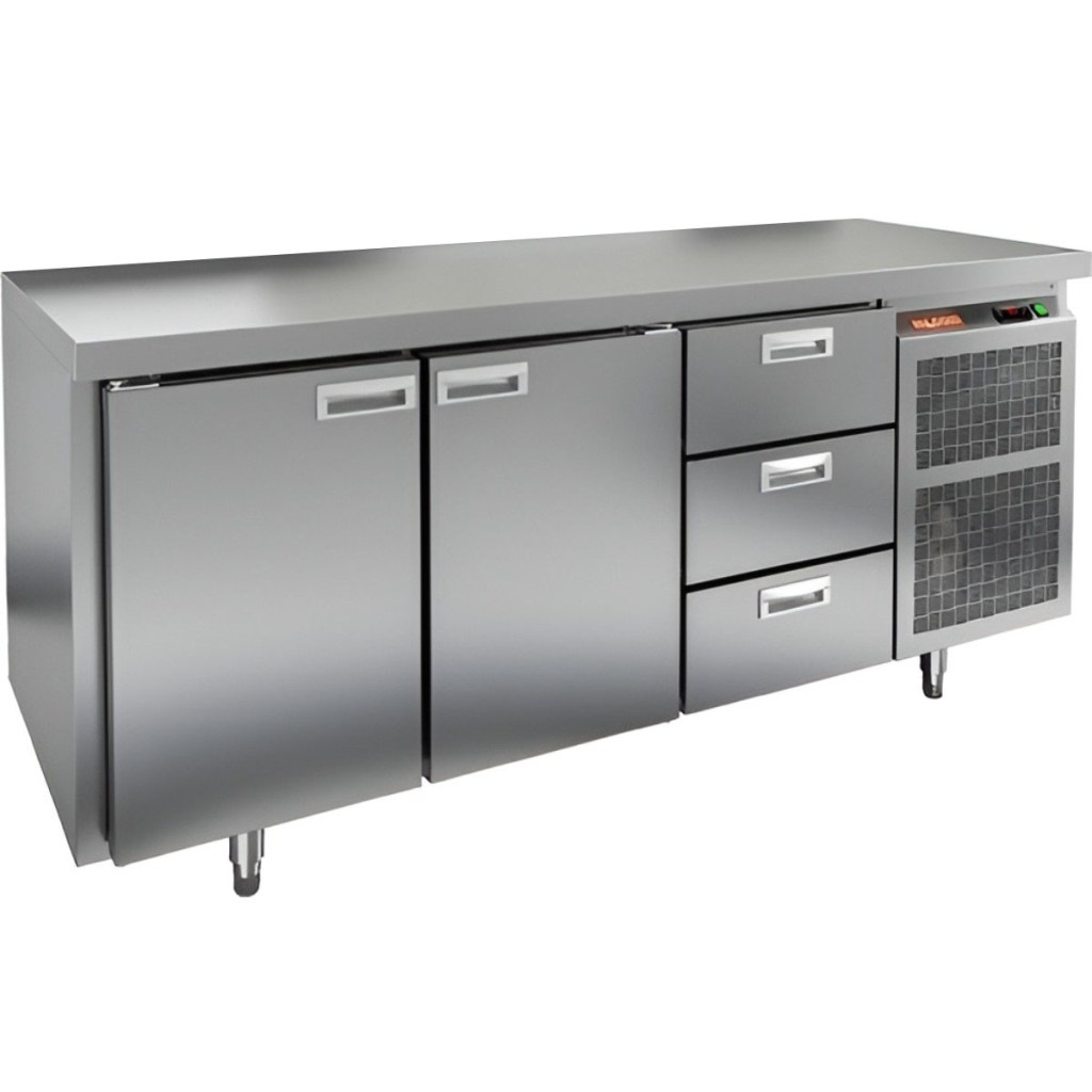 Каталог оборудования Холодильное оборудованиеСтолы охлаждаемыеСтолы морозильные низкотемпературныеСтол морозильный HiCold GN 113/BT O Стол морозильный HiCold GN 113/BT O Код товара: 065-066 Поделиться: WhatsAppTelegram СравнитьДобавить в КПВ избранное 0 220 852 ₽ В корзину 0 шт Под заказСамовывоз сегодня бесплатно Взять в кредит Купить в лизинг Получить консультацию в WhatsApp Описание Характеристики Отзывы 0 Инструкции 2 Стол морозильный HiCold GN113/BT О сочетает в себе удобную рабочую поверхность и вместительную морозильную камеру. Верхняя часть используется для раскатки теста и подготовки ингредиентов, а внутренняя камера предназначена для заморозки и хранения продуктов и полуфабрикатов. Стол оснащен двумя глухими дверями и тремя выдвижными ящиками, что обеспечивает удобный доступ к продуктам и рациональное использование внутреннего пространства. Оборудование идеально подходит для предприятий общественного питания. Особенности: Совместимость с GN-стандартом — полки, направляющие и стойки полностью интегрируются с профессиональным кухонным оборудованием. Прочный цельнозаливной корпус из нержавеющей стали с 50 мм изоляцией обеспечивает высокую герметичность и жесткость конструкции. Столешница без борта для удобной работы с крупными и длинными заготовками. Электронный блок управления с повышенной надежностью и несколькими режимами оттаивания. Вентилятор увеличенной мощности и принудительная вентиляция по всему объему камеры для равномерного и быстрого охлаждения. Интеллектуальная система размораживания и термическое выпаривание конденсата снижают затраты на обслуживание. Экономичный компрессор нового поколения снижает энергопотребление. Облегченный доступ к агрегату упрощает сервисное обслуживание. Двери с доводчиками и ПЭН предотвращают примерзание и обеспечивают плотное закрытие. Регулируемые по высоте ножки для устойчивости на разных поверхностях. Максимальная нагрузка на полку — 50 кг. Высота борта рабочей поверхности — 50 мм. Температура окружающей среды: 12–32 °C. HiCold GN113/BT О — это надежный и функциональный морозильный стол, обеспечивающий удобство работы и эффективное хранение продуктов. Он идеально подходит для интенсивной эксплуатации на профессиональных кухнях ресторанов, кафе и предприятий общественного питания.Изображение товара, представленного на фото, может отличаться от его фактического вида. Показать все Габаритные размеры1835×700×850 ммДиапазон рабочей температурыот -18 до -10 °CРасположение агрегатаБоковое Материал столешницыНержавеющая Тип столаС дверьми и ящиками Тип двериГлухая Объём505 лКоличество дверей2 штКоличество ящиков3 штНапряжение220 ВМощность0,6 кВтТип охлажденияДинамический Тип оттайкиАвтоматическая СтолешницаБзе борта Габариты в упаковке200×845×995 ммВес нетто210 кгВес брутто230 кгБрендHicoldВсе морозильные столы HicoldВсе морозильные столы без борта Оставить отзыв Еще никто не оставил отзыв на этот товар Паспорт на HICOLD GN113/BT О.pdfДекларация о соответствии.pdf Похожие товары Перейти в каталог Под заказ 169 732 ₽ Стол морозильный Abat СХН-70-02 без борта (дверь, дверь, дверь) Под заказ 156 861 ₽ Стол морозильный HiCold GN 111/BT W Ранее просмотрено Под заказ 236 152 ₽ Стол морозильный HiCold GN 122/BT O