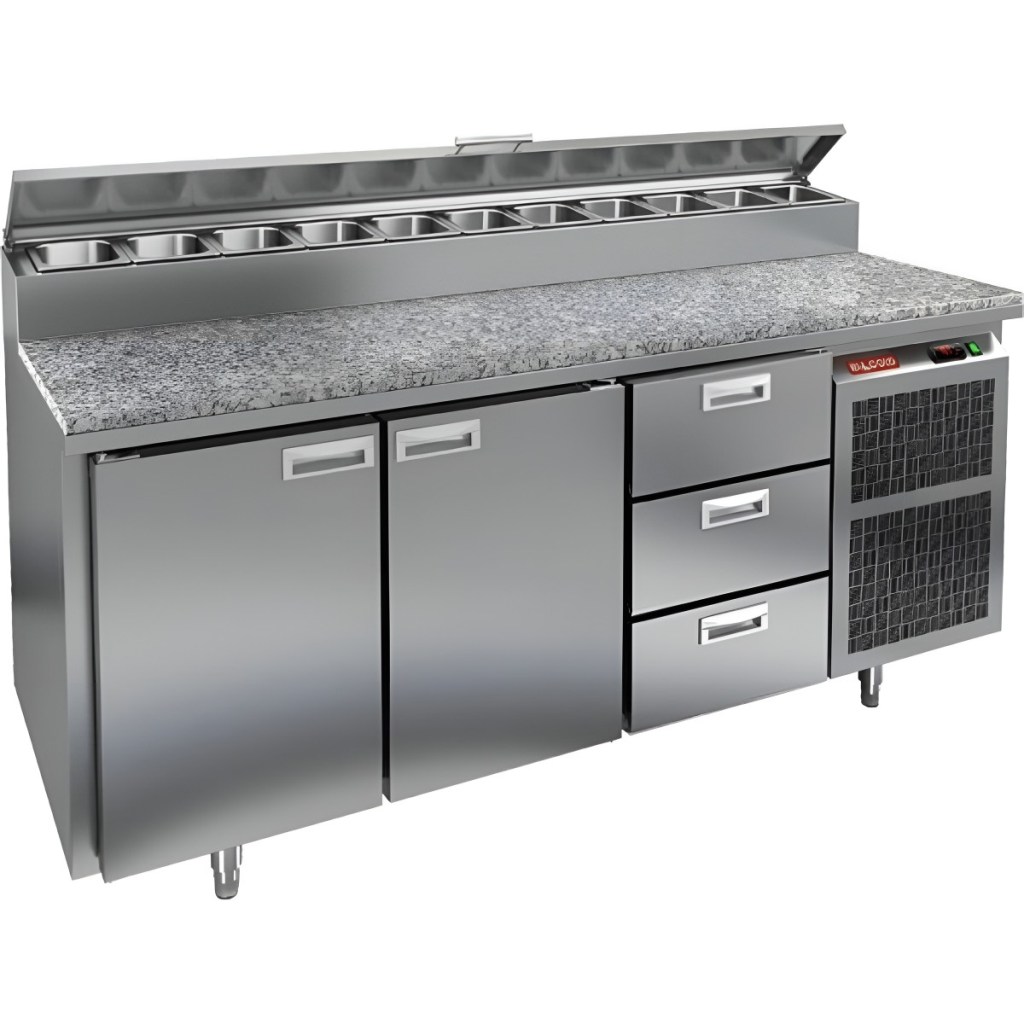 Каталог оборудования Холодильное оборудованиеСтолы охлаждаемыеСтолы холодильные для пиццыСтол холодильный для пиццы HiCold PZ2-113GN (1/6) камень Стол холодильный для пиццы HiCold PZ2-113GN (1/6) камень Код товара: 064-762 Поделиться: WhatsAppTelegram СравнитьДобавить в КПВ избранное 0 292 761 ₽ В корзину 0 шт Под заказСамовывоз сегодня бесплатно Взять в кредит Купить в лизинг Получить консультацию в Max Описание Характеристики Отзывы 0 Инструкции 2 Стол холодильный для пиццы HiCold PZ2-113/GN (1/6) камень предназначен для кухонь и предприятий общественного питания. Он используется для раскатки теста, подготовки ингредиентов для пиццы, салатов и других блюд, а также для охлаждения и кратковременного хранения скоропортящихся продуктов. Модель совмещает гранитную рабочую поверхность и охлаждаемый отсек с 2 дверьми и 3 ящиками, обеспечивая удобный доступ к ингредиентам и эффективное хранение. Особенности: Динамическая система охлаждения для равномерного поддержания температуры Автоматическая оттайка для удобного обслуживания Электронная панель управления для точной настройки параметров Вместительная внутренняя полка формата GN 1/1 (размер 530×325 мм) 2 двери и 3 вместительных ящика для хранения ингредиентов Автоматические доводчики дверей с фиксатором открытого положения Легкозаменяемые магнитные уплотнители для герметичности Открытая агрегатная часть для легкого доступа к компонентам Регулируемые по высоте ножки для устойчивости Гранитная рабочая поверхность глубиной 486 мм и толщиной 50 мм — устойчива к повреждениям, высоким температурам и царапинам Толщина теплоизоляции: 50 мм Максимальная глубина гастроемкостей: 100 мм Вместимость салат-бара: 11 гастроемкости Стол холодильный HiCold PZ2-113/GN (1/6) камень — это надёжный и функциональный стол для пиццы. Он сочетает рабочую поверхность и охлаждаемый отсек, облегчает хранение и подготовку ингредиентов, повышает удобство работы повара и соответствует стандартам профессиональной кухни.Изображение товара, представленного на фото, может отличаться от его фактического вида. Показать все Габаритные размеры1835×700×1000 ммДиапазон рабочей температурыот +2 до +10 °CРасположение агрегатаБоковое Материал столешницыГранитная Тип столаС дверьми и ящиками Тип двериГлухая Объём505 лТип гастроемкостейGN 1/6 Количество дверей2 штКоличество ящиков3 штРазмер полки530×325 ммНапряжение220 ВМощность0,5 кВтТип охлажденияДинамическое Тип оттайкиАвтоматическая Габариты в упаковке2000×850×1140 ммВес нетто172 кгВес брутто248 кгБрендHicoldВсе холодильные столы для пиццы Hicold Оставить отзыв Еще никто не оставил отзыв на этот товар Паспорт на HICOLD PZ2-113/GN.pdfДекларация о соответствии.pdf Ранее просмотрено Под заказ 308 061 ₽ Стол холодильный для пиццы HiCold PZ2-122GN (1/6) камень