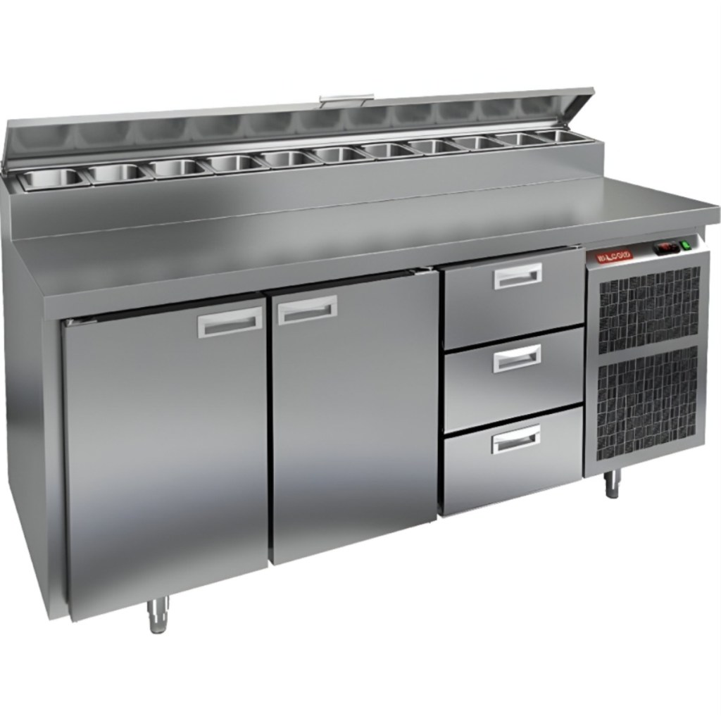 Каталог оборудования Холодильное оборудованиеСтолы охлаждаемыеСтолы холодильные для пиццыСтол холодильный для пиццы HiCold PZ2-113GN (1/6) Стол холодильный для пиццы HiCold PZ2-113GN (1/6) Код товара: 064-761 Поделиться: WhatsAppTelegram СравнитьДобавить в КПВ избранное 0 260 272 ₽ В корзину 0 шт Под заказСамовывоз сегодня бесплатно Взять в кредит Купить в лизинг Получить консультацию в WhatsApp Описание Характеристики Отзывы 0 Инструкции 2 Стол холодильный для пиццы HiCold PZ2-113GN (1/6) предназначен для кухонь и предприятий общественного питания. Он используется для раскатки теста, подготовки ингредиентов для пиццы, салатов и других блюд, а также для охлаждения и кратковременного хранения скоропортящихся продуктов. Модель совмещает нержавеющую рабочую поверхность и охлаждаемый отсек с 2 дверьми и 3 ящиками, обеспечивая удобный доступ к ингредиентам и эффективное хранение. Особенности: Динамическая система охлаждения для равномерного поддержания температуры Автоматическая оттайка для удобного обслуживания Электронная панель управления для точной настройки параметров Вместительная внутренняя полка формата GN 1/1 (размер 530×325 мм) 2 двери и 3 вместительных ящика для хранения ингредиентов Автоматические доводчики дверей с фиксатором открытого положения Легкозаменяемые магнитные уплотнители для герметичности Открытая агрегатная часть для легкого доступа к компонентам Регулируемые по высоте ножки для устойчивости Нержавеющая столешница глубиной 486 мм и толщиной 50 мм — устойчива к коррозии, легко моется и гигиенична Толщина теплоизоляции: 50 мм Максимальная глубина гастроемкостей: 100 мм Вместимость салат-бара: 11 гастроемкости Стол холодильный HiCold PZ2-113GN (1/6) — это надежный и функциональный стол для пиццы. Он объединяет рабочую поверхность и охлаждаемый отсек, упрощает хранение и подготовку ингредиентов, обеспечивает удобство работы повара и соответствует стандартам профессиональной кухни. Изображение товара, представленного на фото, может отличаться от его фактического вида. Показать все Габаритные размеры1835×700×1000 ммДиапазон рабочей температурыот +2 до +10 °CРасположение агрегатаБоковое Материал столешницыНержавеющая Тип столаС дверьми и ящиками Тип двериГлухая Объём505 лТип гастроемкостейGN 1/6 Количество дверей2 штКоличество ящиков3 штРазмер полки530×325 ммНапряжение220 ВМощность0,46 кВтТип охлажденияДинамическое Тип оттайкиАвтоматическая Вес нетто172 кгВес брутто210 кгБрендHicoldВсе холодильные столы для пиццы HicoldВсе нержавеющие холодильные столы для пиццы Оставить отзыв Еще никто не оставил отзыв на этот товар Паспорт на HICOLD PZ2-113GN.pdfДекларация о соответствии.pdf Ранее просмотрено Под заказ 245 242 ₽ Стол холодильный для пиццы HiCold PZ1-22GN (1/3) Под заказ 342 442 ₽ Стол холодильный для пиццы HiCold PZ2-1133GN (1/6) Под заказ 220 221 ₽ Стол холодильный для пиццы HiCold PZE1-1111GN (1/3)