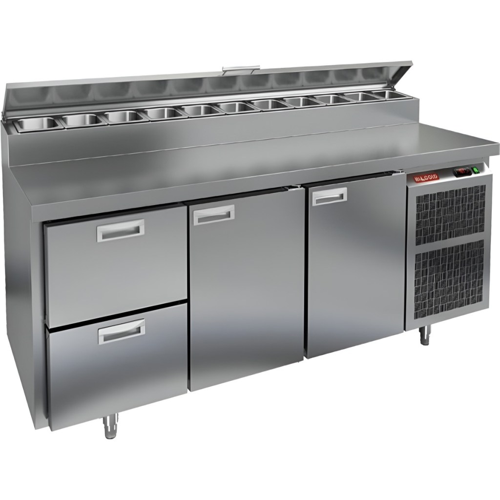Каталог оборудования Холодильное оборудованиеСтолы охлаждаемыеСтолы холодильные для пиццыСтол холодильный для пиццы HiCold PZ2-211/GN (1/6H) Стол холодильный для пиццы HiCold PZ2-211/GN (1/6H) Код товара: 064-771 Поделиться: WhatsAppTelegram СравнитьДобавить в КПВ избранное 0 244 971 ₽ В корзину 0 шт Под заказСамовывоз сегодня бесплатно Взять в кредит Купить в лизинг Получить консультацию в WhatsApp Описание Характеристики Отзывы 0 Стол холодильный для пиццы HiCold PZ2-211/GN (1/6H) предназначен для кухонь и предприятий общественного питания. Он используется для раскатки теста, подготовки ингредиентов для пиццы, салатов и других блюд, а также для охлаждения и кратковременного хранения скоропортящихся продуктов. Модель совмещает нержавеющую рабочую поверхность и охлаждаемый отсек с 2 дверями и 2 выдвижными ящиками, обеспечивая удобный доступ к ингредиентам и эффективное хранение. Особенности: Динамическая система охлаждения для равномерного поддержания температуры Автоматическая оттайка для удобного обслуживания Электронная панель управления для точной настройки параметров Вместительная внутренняя полка формата GN 1/1 (размер 530×325 мм) 2 двери и 2 вместительных ящика для хранения ингредиентов Автоматические доводчики дверей с фиксатором открытого положения Легкозаменяемые магнитные уплотнители для герметичности Открытая агрегатная часть для легкого доступа к компонентам Регулируемые по высоте ножки для устойчивости Нержавеющая столешница глубиной 486 мм и толщиной 50 мм — устойчива к коррозии, легко моется и гигиенична Толщина теплоизоляции: 50 мм Максимальная глубина гастроемкостей: 100 мм Вместимость салат-бара: 11 гастроемкости Стол холодильный HiCold PZ2-211/GN (1/6H) — это надежное и удобное решение для профессиональной кухни. Он обеспечивает легкий доступ к ингредиентам, упрощает хранение и подготовку продуктов и полностью соответствует стандартам предприятий общественного питания.Изображение товара, представленного на фото, может отличаться от его фактического вида. Показать все Габаритные размеры1835×700×1000 ммДиапазон рабочей температурыот +2 до +10 °CРасположение агрегатаБоковое Материал столешницыНержавеющая Тип столаС дверьми и ящиками Тип двериГлухая Объём505 лТип гастроемкостейGN 1/6 Количество дверей2 штКоличество ящиков2 штРазмер полки530×325 ммНапряжение220 ВМощность0,5 кВтТип охлажденияДинамическое Тип оттайкиАвтоматическая Габариты в упаковке2000×850×1140 ммВес нетто172 кгВес брутто210 кгБрендHicoldВсе холодильные столы для пиццы HicoldВсе нержавеющие холодильные столы для пиццы Оставить отзыв Еще никто не оставил отзыв на этот товар Ранее просмотрено Под заказ 311 842 ₽ Стол холодильный для пиццы HiCold PZ1-1122/GN (1/3H) Под заказ 206 541 ₽ Стол холодильный для пиццы HiCold PZ1-11GN (1/3) М Под заказ 260 272 ₽ Стол холодильный для пиццы HiCold PZ1-113GN (1/3H) Под заказ 273 142 ₽ Стол холодильный для пиццы HiCold PZ1-1111GN (1/3) M