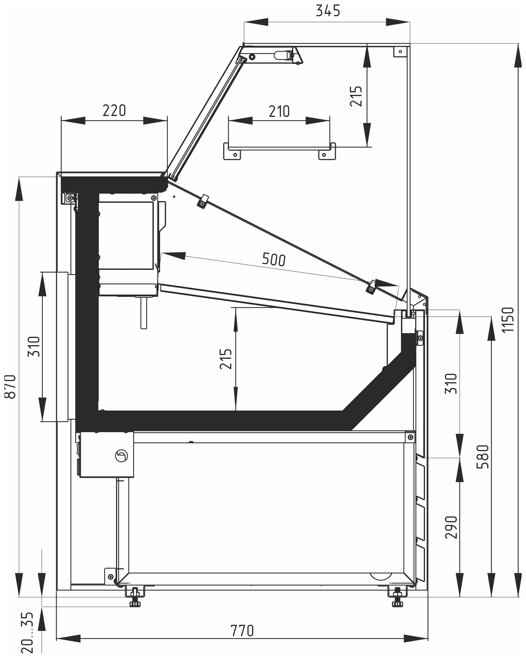 • Вместимость: 4 × GN 1/3 глубиной 150 мм (приобретаются отдельно).