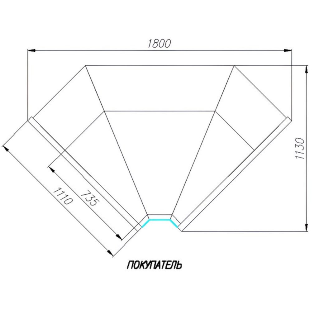 Внутренний угол 90° — удобное расположение витрины внутри торгового зала.